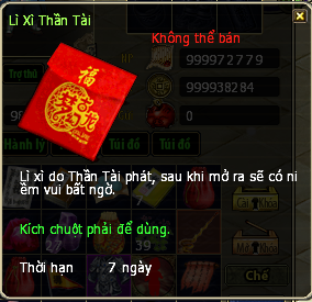 4. Lì Xì Thần Tài có thể giao dịch và sẽ tự động biến mất sau 7 ngày.